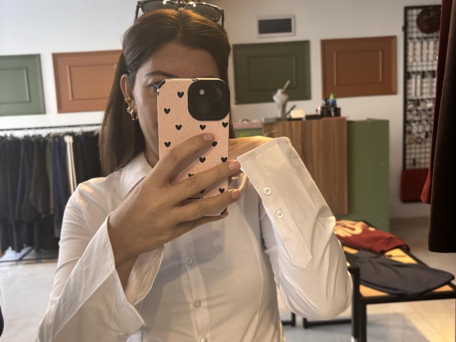 Kolları düğmeli streç kumaştır