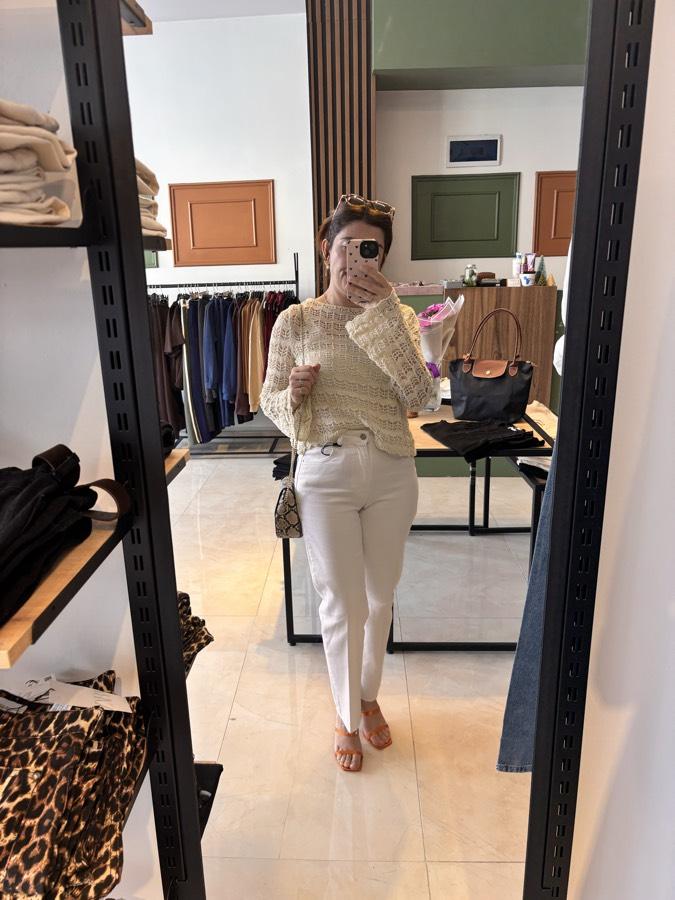 Likralı paçası kesik flare kesimdir
