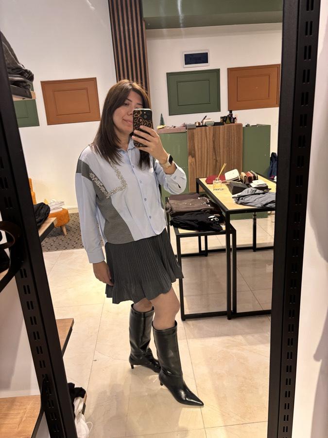 Gri pileli etek arka bel lastiklidir